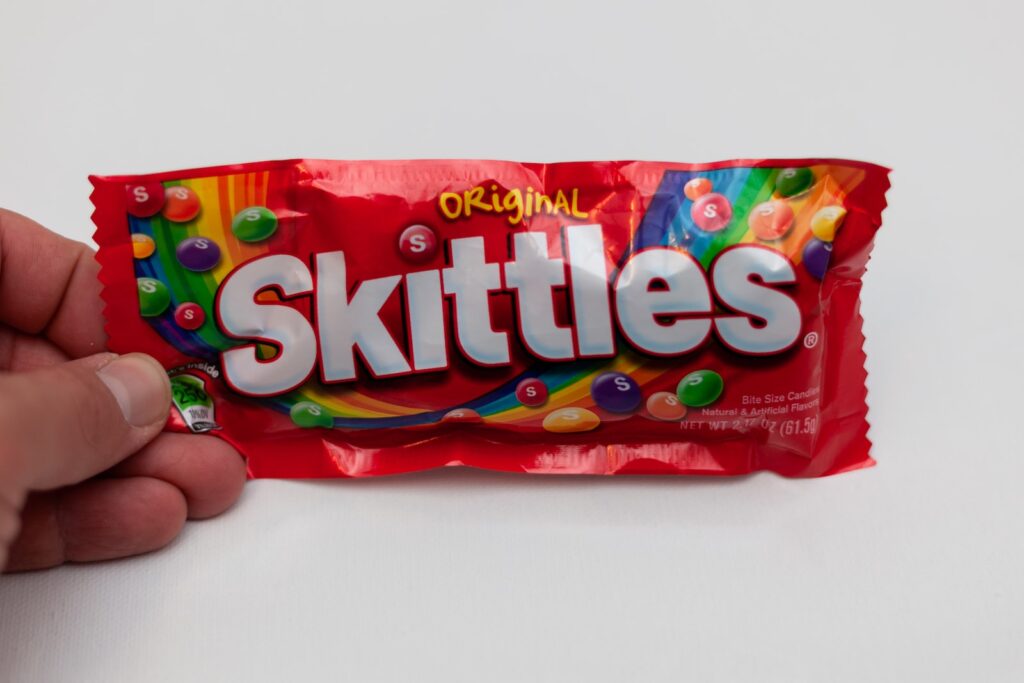 Vous avez certainement deviné de quoi il s’agit avec cette célèbre slogan: “Taste the Rainbow”. Oui, nous parlons des Skittles. L’ingrédient en question est le dioxyde de titane. Mars Inc, l’entreprise derrière ces bonbons colorés, avait annoncé en 2016 qu’elle retirerait cet additif de ses produits. Pourtant, sept ans plus tard, le dioxyde de titane est toujours présent dans les dragées Skittles.