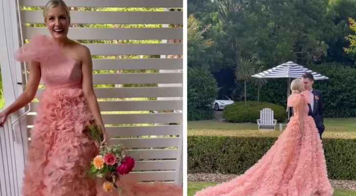 Camille rompt la tradition avec une robe de mariée rose : « C’est censé être blanc, non ? »