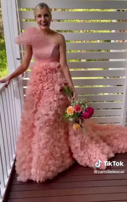 En novembre 2022, Camille a choisi de se marier avec une robe rose conçue sur mesure par une designer australienne. Avec un budget de 4 400 euros, elle a fait un choix audacieux qui a rapidement captivé l’attention sur les réseaux sociaux, notamment TikTok. Cela a suscité des réactions variées parmi les internautes et a allumé un débat passionné sur les normes des mariages.