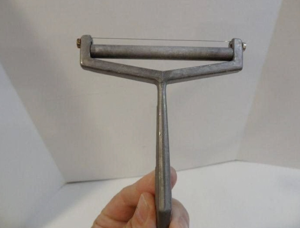 Imaginons un instant avoir ce coupe-fromage entre les mains. Fabriqué en métal, il prend une forme en Y, avec un fil tendu entre deux extrémités. On ne trouve ni boutons ni pièces mobiles, ce qui donne l’impression d’un objet à la fois ancien et presque mystérieux. Sa démarche pour le comprendre paraît naturelle : une inspection minutieuse, un essai, mais le mystère reste entier.